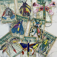 Design and build your own whimsical bug, moth, or imaginary creature, then attach it to a bingo card base. Bring your own card or pick from a selection we’ll have on hand. Use found and handmade papers to collage an existing insect—or invent one straight from your imagination. You’ll have the option to enhance your creation with paint and other mixed media materials. We’ll cover basic collage techniques, but all experience levels are welcome. Want to take it further? You can even add machine stitching to finish your piece with flair.
